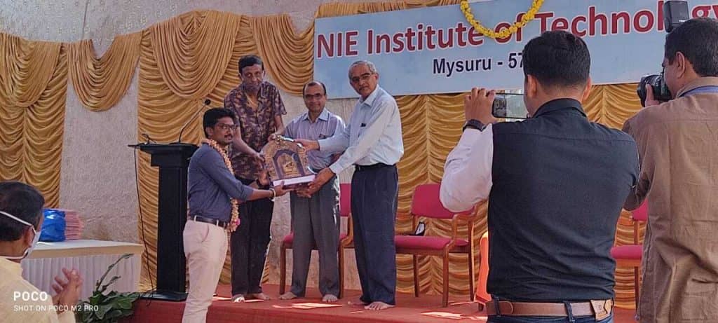 Pooja was performed on 25th Oct 2020, Sunday from 6.00 PM to 10.00 PM and 26th Oct 2020, Monday between 8.00 AM to 10.00 AM at NIE IT Campus, Mysuru. The same was inaugurated by Shri Yukteshanandaji Maharaj, Shri Ramakrishna Ashram, Mysuru.